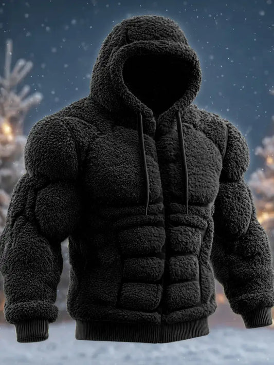 Line Art Flannel Warm Men's Hooded Sweatshirt