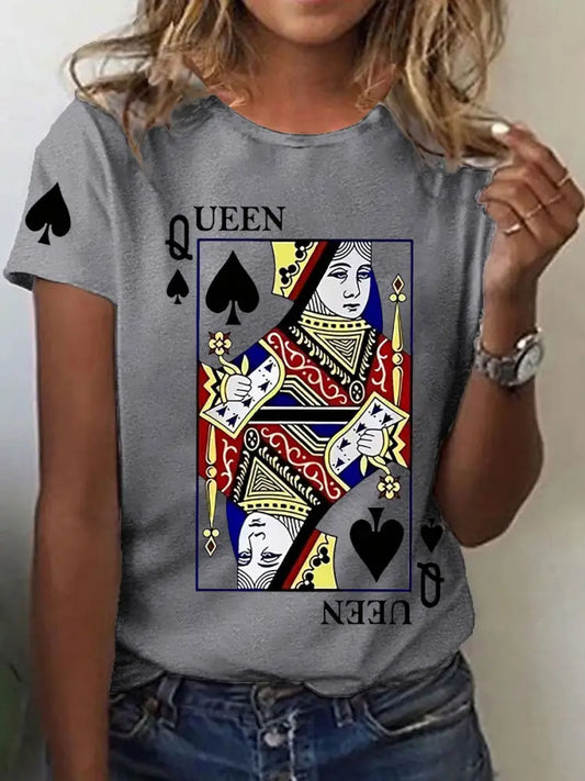 Women's Queen Poker Printed Casual T-Shirt