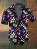 Men's Abstract Music Skull Print Casual Short Sleeved Shirt