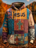 Men's Retro Casual Faith Cross Art Print Oversized Drop-Shoulder Pockets Hoodie
