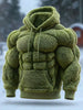 Men's Vintage Muscle Line Art Flannel Warm Cozy Hooded Sweatshirt