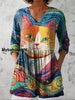 Retro Bohemian Floral Print Vintage Casual Cotton V Neck Long Sleeve T-Shirt