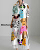 Retro Cartoon Dog Long Sleeve Slit Shirt Dress