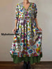 Vintage V-neck Bohemian Hippie Print Elegant Chic Loose Midi Dress