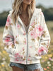 Women's Breast Cancer Flowers Print Zip-Up Hoodie