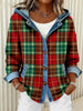 Women's Christmas Inspired Plaid Pattern Patchwork Art Hooded Cardigan