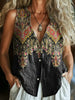 Women's Ethnic Flower Art Print Sleeveless Cotton Shirt