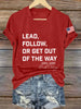 Women's Lead Fallow Or Get Out Of The Way Print V Neck Short Sleeve T-shirt