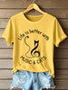 Women's Life Is Better With Music & Cats Print T-Shirt