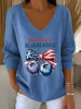 Women's 'Red White & Blueberries' V-neck long sleeve T-shirt