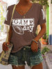 Women's V-neck Football Fans Lovers Gameday Casual T-shirt with piping